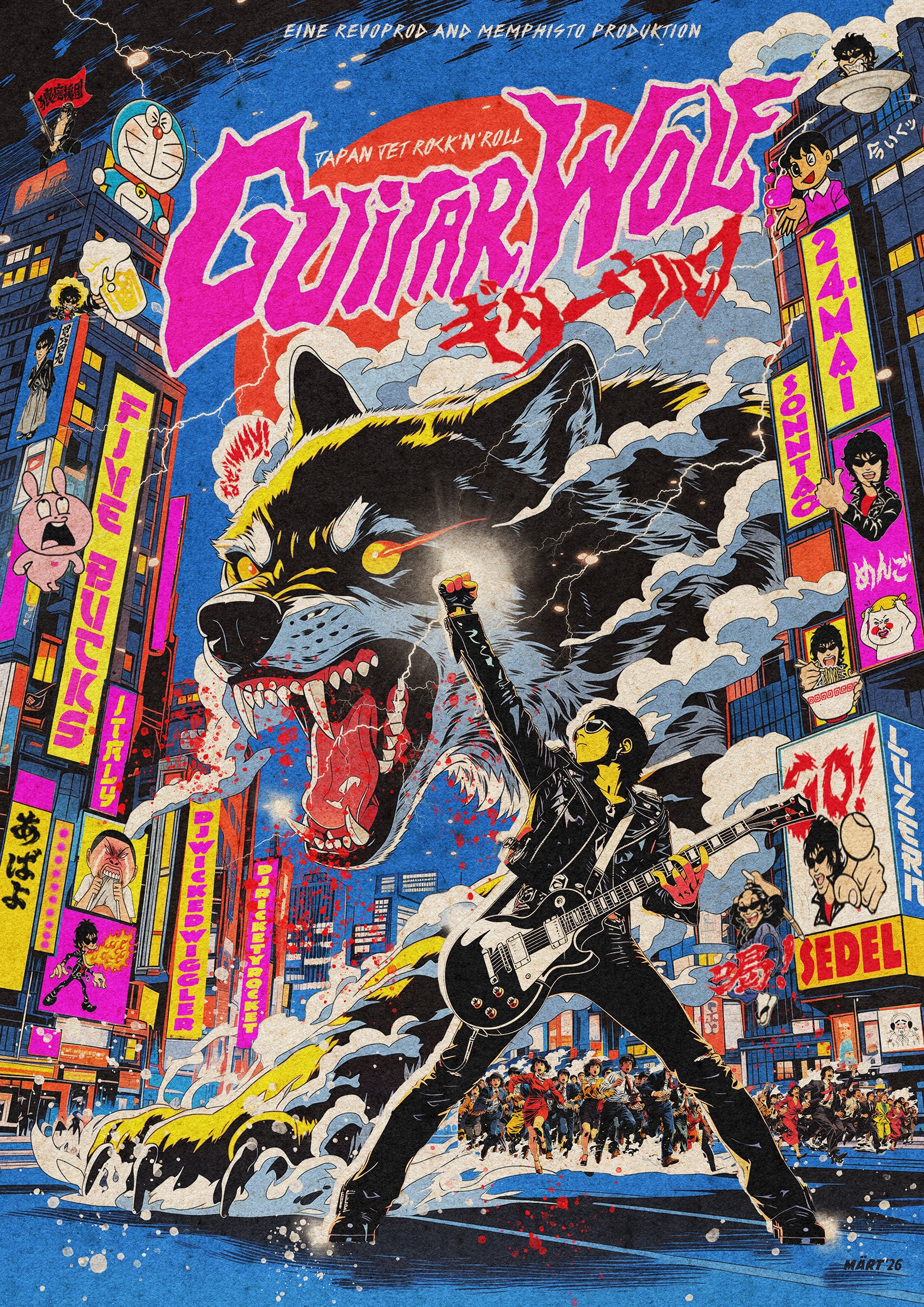 “Don’t move needle, just red zone” – dieses Zitat von Guitar Wolf während einer Studiosession zeigt worum es bei Guitar Wolf geht: Drei Typen und ihrer Hingabe zum wahren RocknRoll. Im Gegensatz zu manch anderen Rockbands leben Guitar Wolf den RocknRoll Lifestyle wie es noch kein anderer zuvor getan hat. Man hört es in ihren Songs, man sieht es auf der Bühne: Schweiß, Blut, Tränen und ungefilterte Energie resultieren in wilden zerstörerischen LoFi RocknRoll Hymnen. Das Ergebnis dieser Mischung aus Punk, Rock und Noise schuf ein ganz neues Genre, den Jet RocknRoll. 1987 haben sie sich gegründet und inzwischen ihren weltweiten Kultstatus als lauteste und verrückteste Garagen Noise Band auch auf Leinwand gebracht, im Trash-Rock’n Roll Film „Wild Zero“. 2026 kommen sie wieder auf Tour und haben ein niegelnagelneues Album im Gepäck!