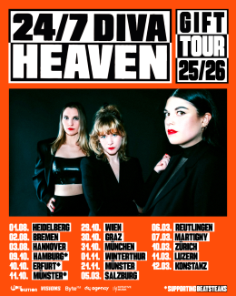 Jetzt sind sie zurück – mit neuem Material: Am 11.10.2024 erschien das lang ersehnte zweite Album GIFT – politisch, zornig, laut, und gleichzeitig voll eingängiger Melodien. 24/7 DIVA HEAVEN schaffen Musik, die aufrüttelt, sich gegen einfache Antworten wehrt und Raum lässt für das Dazwischen. Ihr Sound erinnert an IDLES, PIXIES, PABST oder MELVINS – ist aber ganz klar ihr eigener.